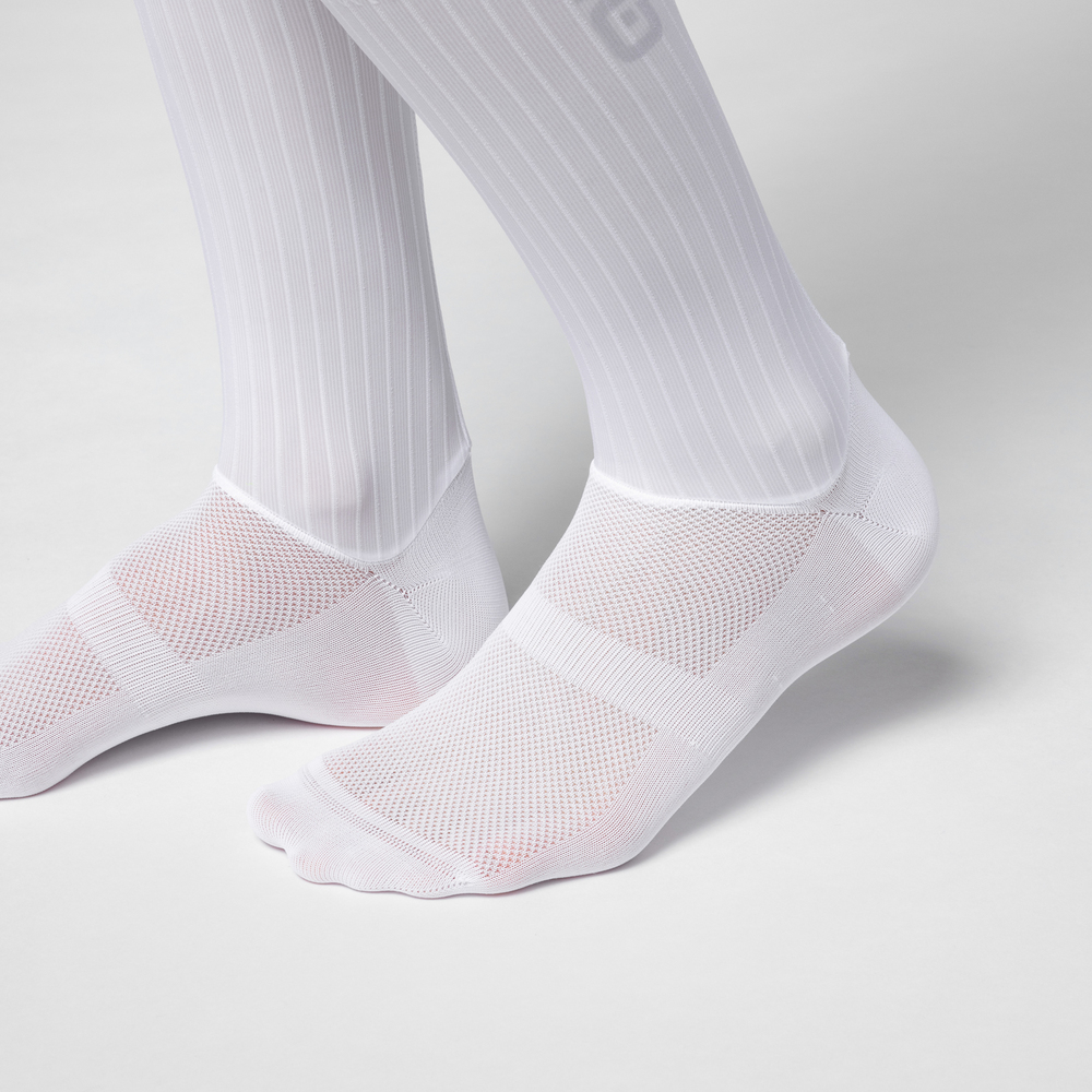 aerodinamikus zokni a tökéletes választás a legjobb idő eléréséhez. Felső része 18 cm magas ésJet Stripes anyagból készült, melynek szerkezete jelentősen hozzájárul ahhoz, hogy a zokni minimális légellenállással bírjon. A szegély Nyers vágott Grip Dots stabilizáló rendszerrel, amely a zoknit ugyanabban a helyzetben tartja.