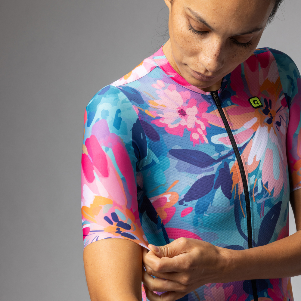 A grafikai dizájn, amelyet olyan természetes elemek ihlettek, mint a perui szivárványhegység, valamint a precíz illeszkedésre összpontosító szabás, a test és a lélegző anyag tökéletessé teszi ezt a könnyed és lélegző felületet.