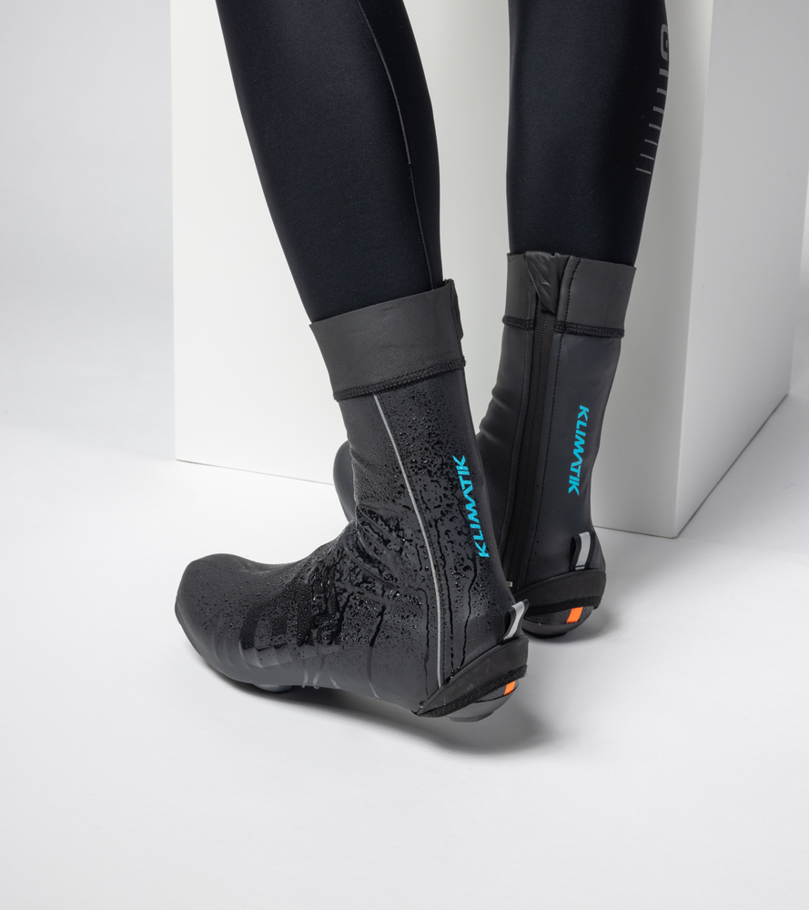 AZ IDŐRE MEGFELELŐ. A KLIMATIK kollekció kerékpáros cipőhuzatai még a legnagyobb esőben is vízállóságot garantálnak.