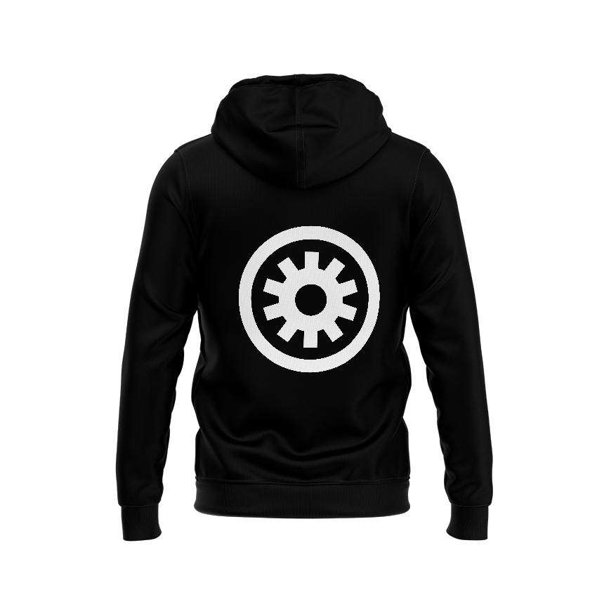 -Szitanyomott ‘Keleti Blokk’ logó a pulóver ujján